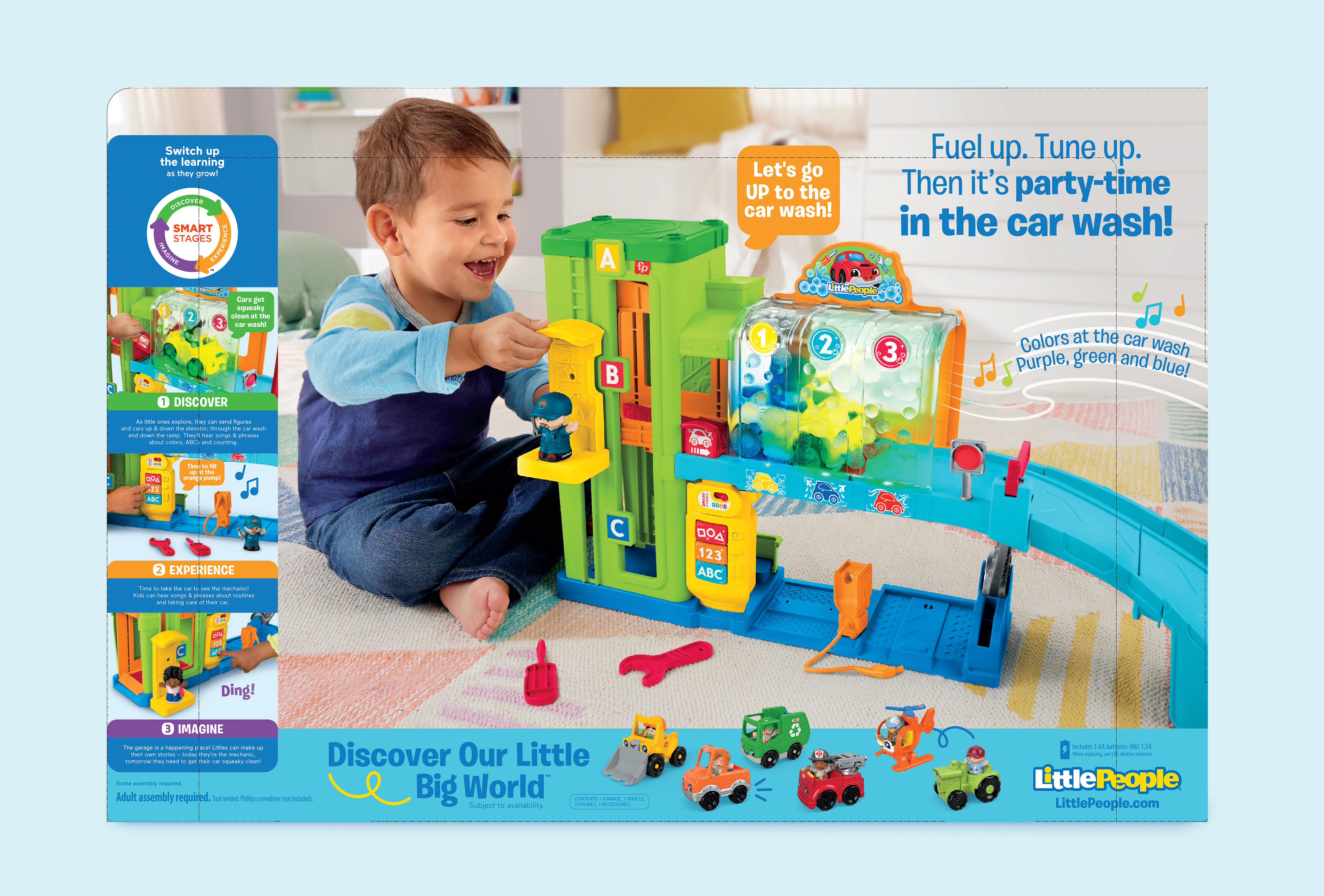 To align the packaging art more closely with the Fisher-Price redesign, I led the direction for a new liner art style. Moving to this 2D style allowed product to stand out better against packaging, and added flexibility to compliment each product pack out best.