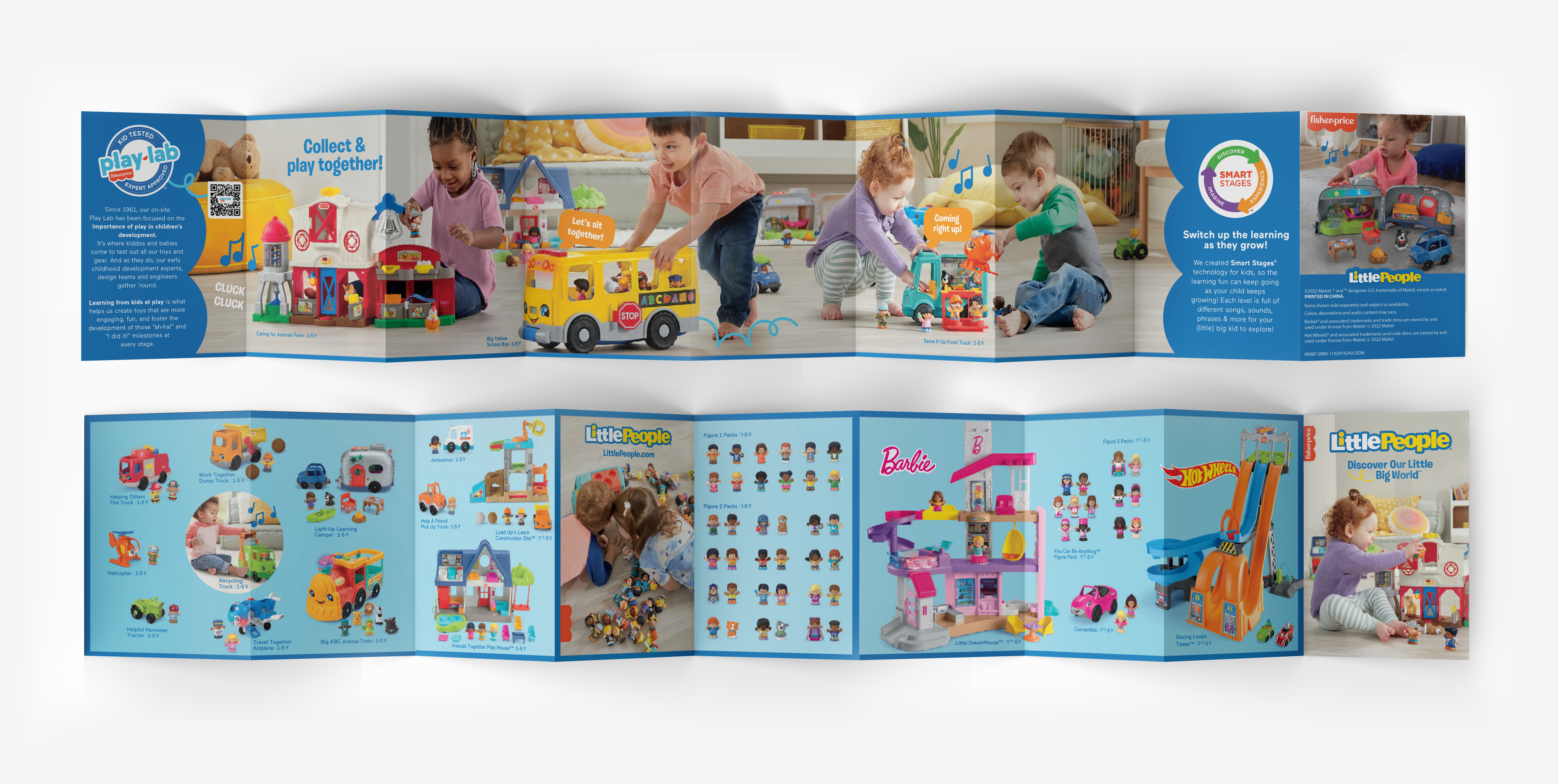 I was tasked to create a cross-sell booklet that showcases both the diverse range of products and the imaginative system of play backed by Fisher-Price’s play-lab and smart stages technology.